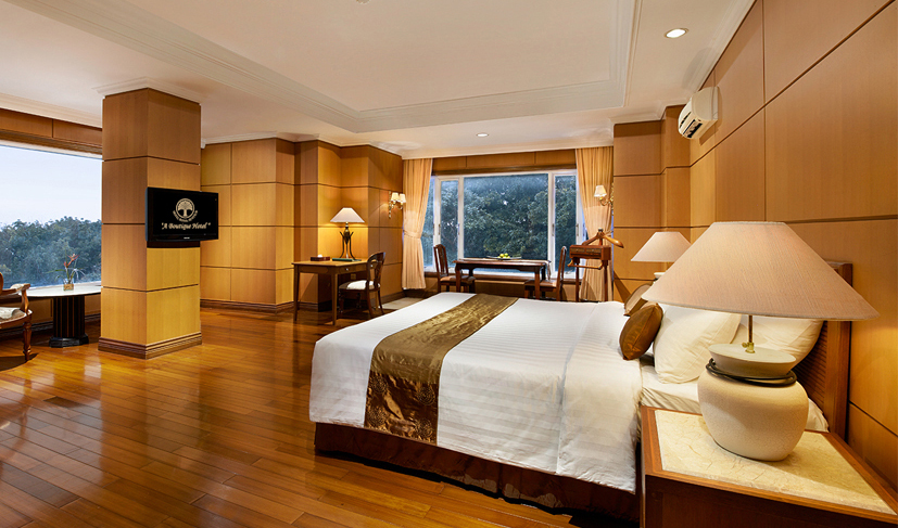 The Royal Senyiur Suite is the highest levels of elegance, luxury and contains of two bed rooms, comfortable sitting room with one set home entertainment and karaoke system, dining area and bar stand. The suite dimensions are 176 square meter.